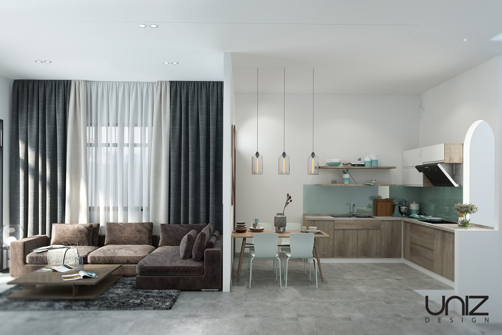 Căn nhà nhỏ của hai mẹ con với phong cách thiết kế tối giản, không cầu kỳ, được đội ngũ thiết kế lựa chọn phù hợp với ngân sách hạn hẹp. Gam màu sáng chủ đạo, điểm nhấn là màu gỗ sậm của đồ đạc nội thất toát lên được sự thanh lịch, gọn gàng như tính cách của gia chủ.