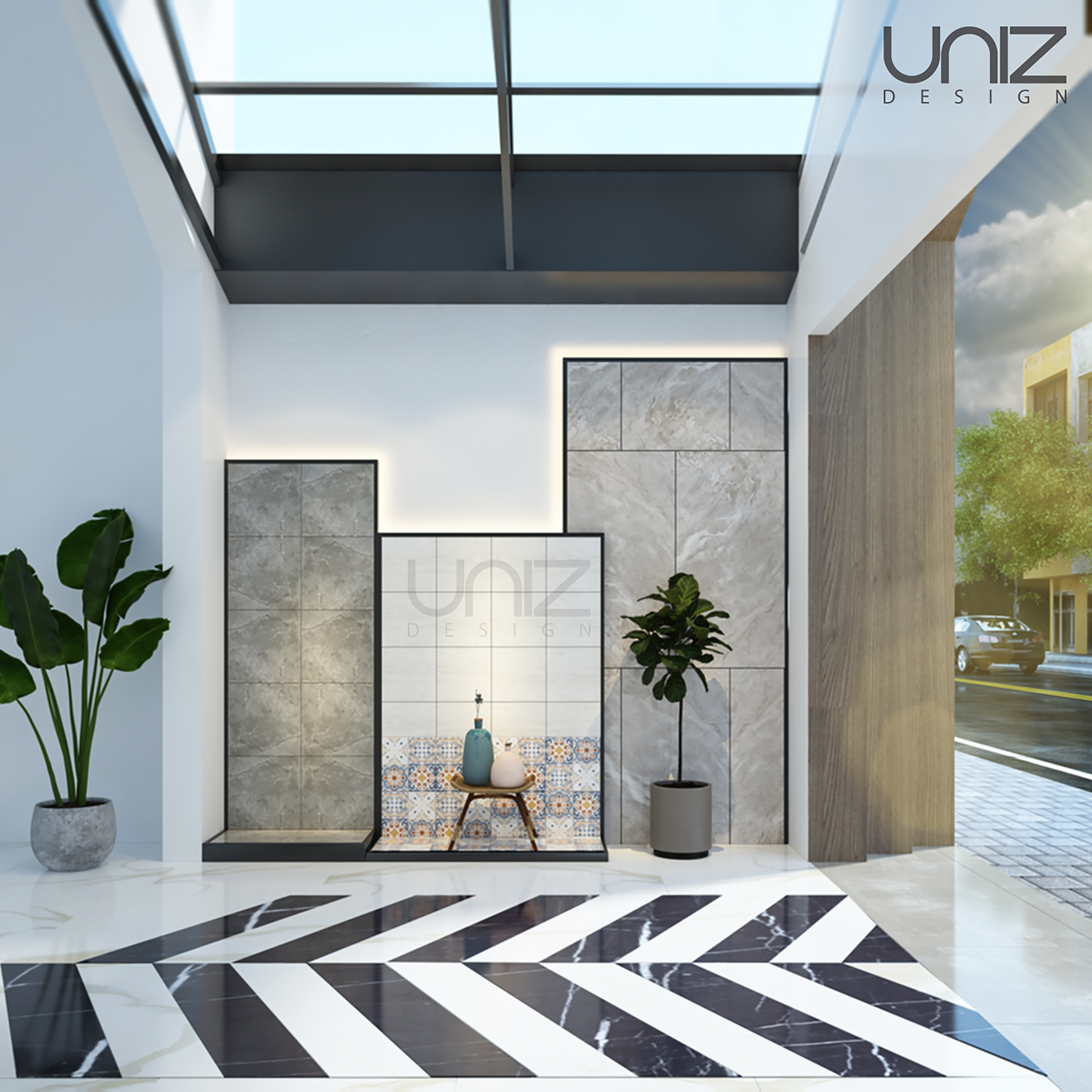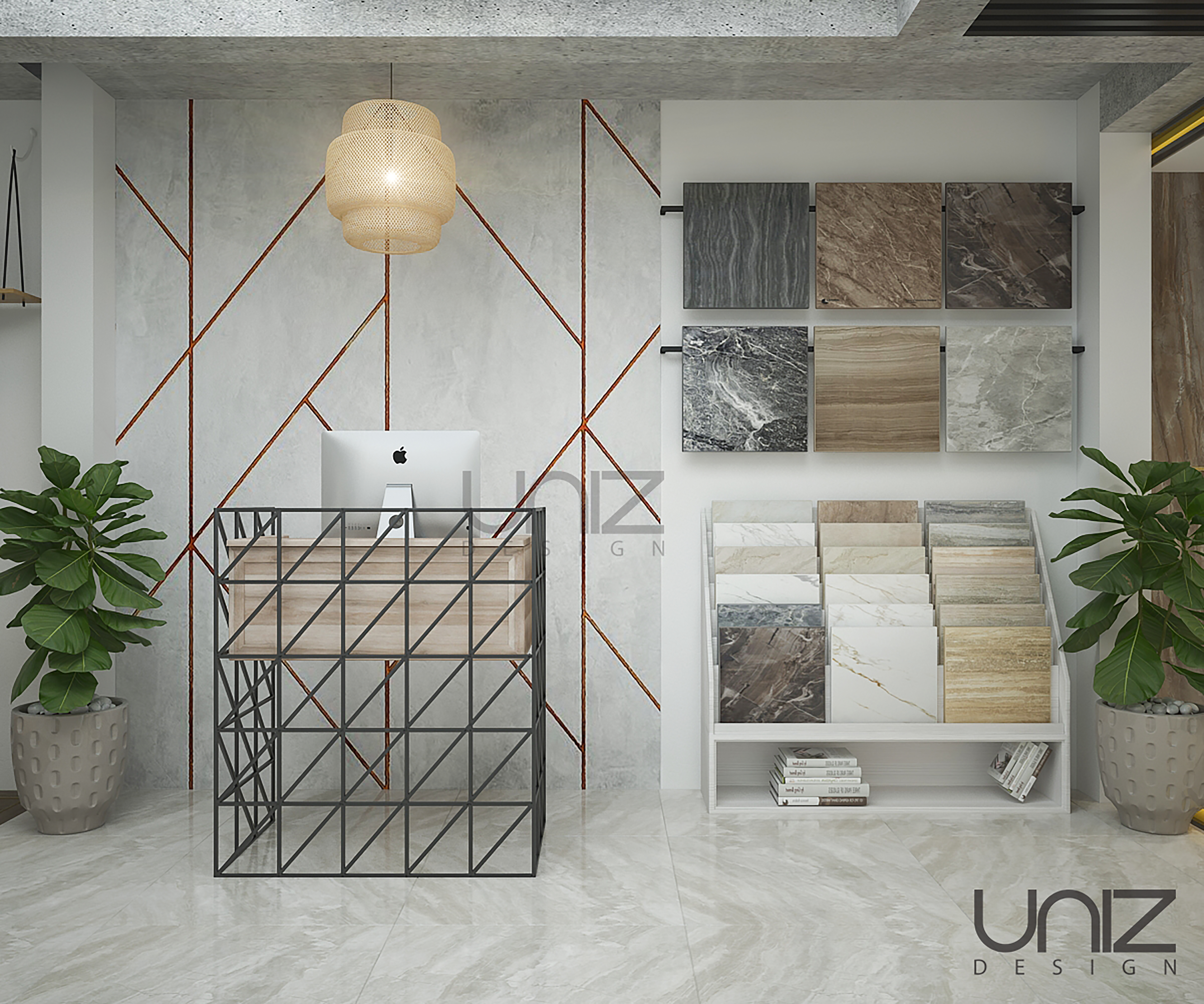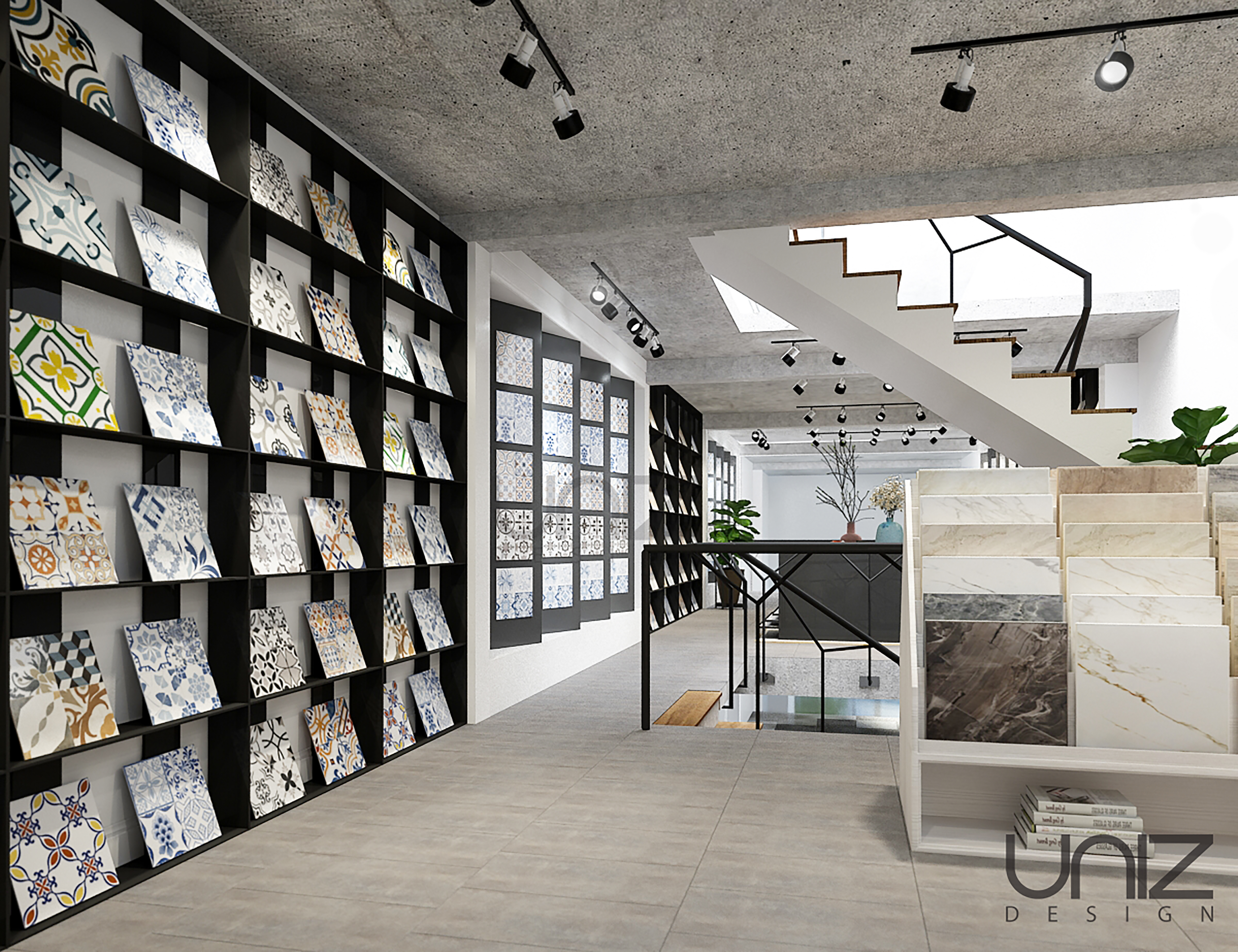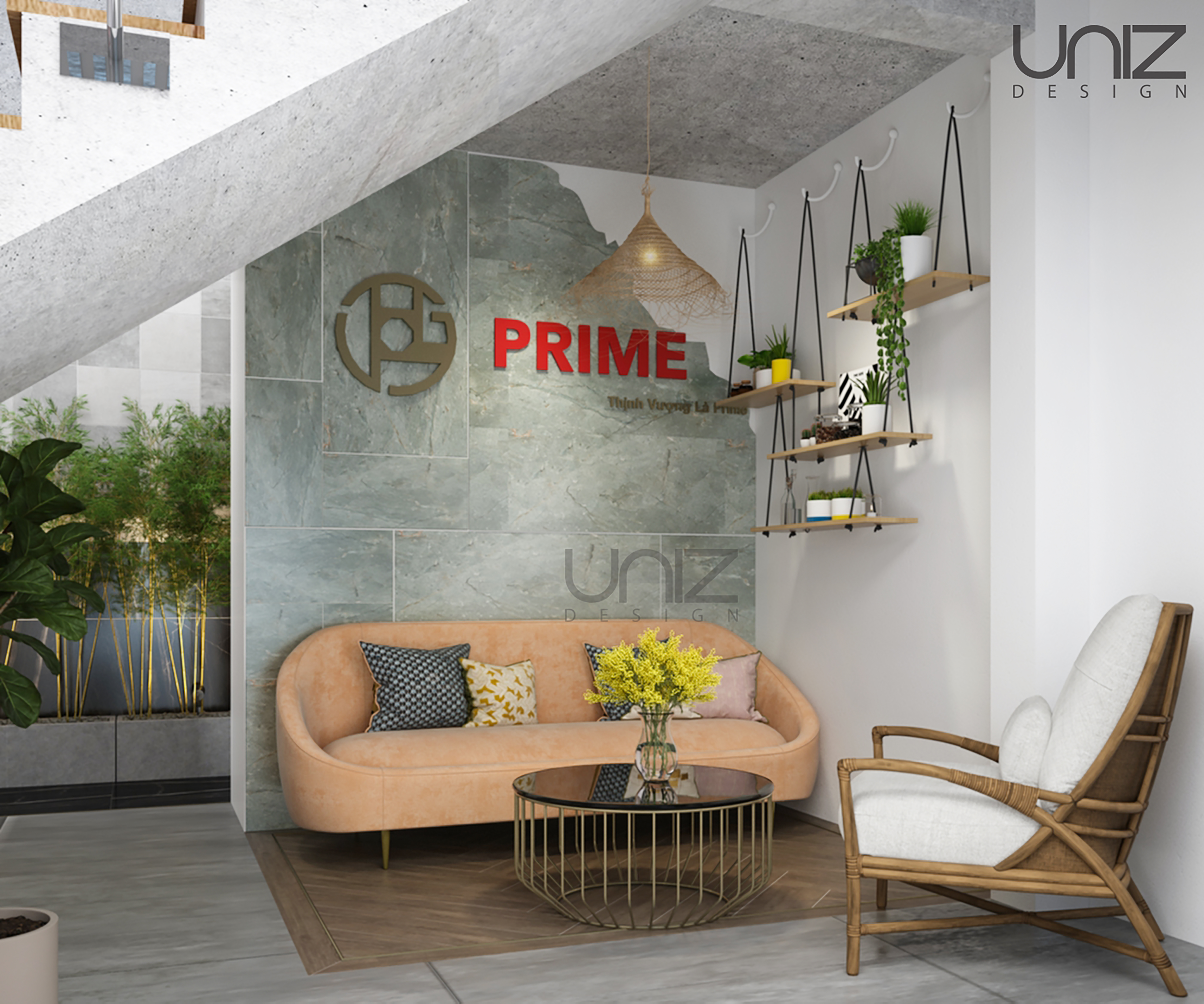 Bản thiết kế là kết quả được hình thành bởi những ý tưởng của đội ngũ thiết kế được chắp cánh bởi chủ đầu tư. Thiết kế dựa trên không gian sẵn có của căn nhà phố 2 tầng được cải tạo thành Showroom gạch ốp lát thương hiệu Prime. Ba khu vực trưng bày gạch theo chủ đề được bố trí ở từng tầng riêng biệt làm nổi bật sản phẩm, đan xen với các góc nhỏ xinh xắn làm điểm nhấn trong không gian nội thất như: khu vực tiếp khách, lễ tân, khu vực giếng trời và cầu thang.
